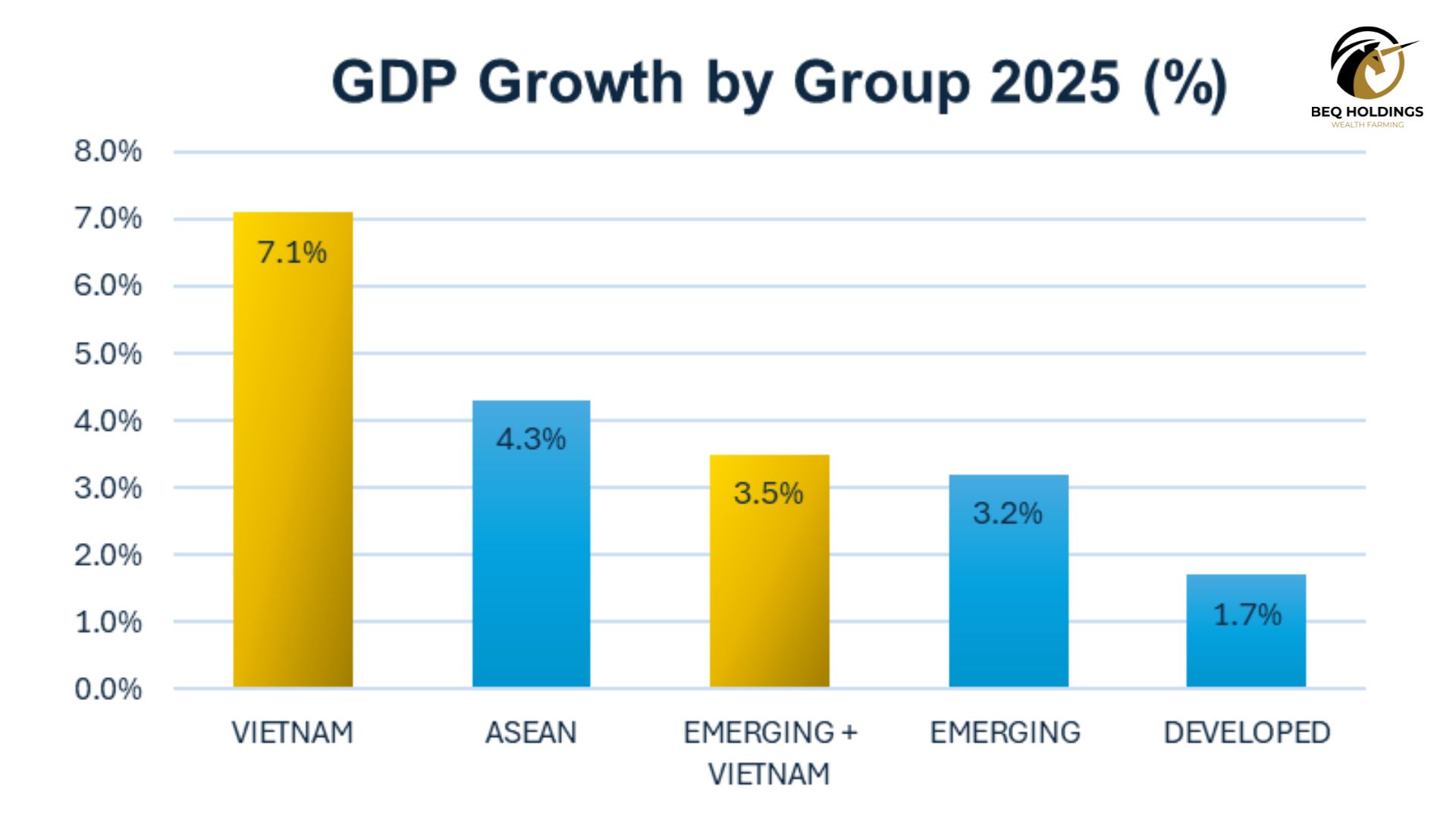 Việt Nam hiện đang nằm trong nhóm hiếm hoi duy trì được tăng trưởng cao trong khi cấu trúc thị trường tài chính vẫn còn nhiều dư địa mở rộng — yếu tố rất được dòng vốn tổ chức ưu tiên.