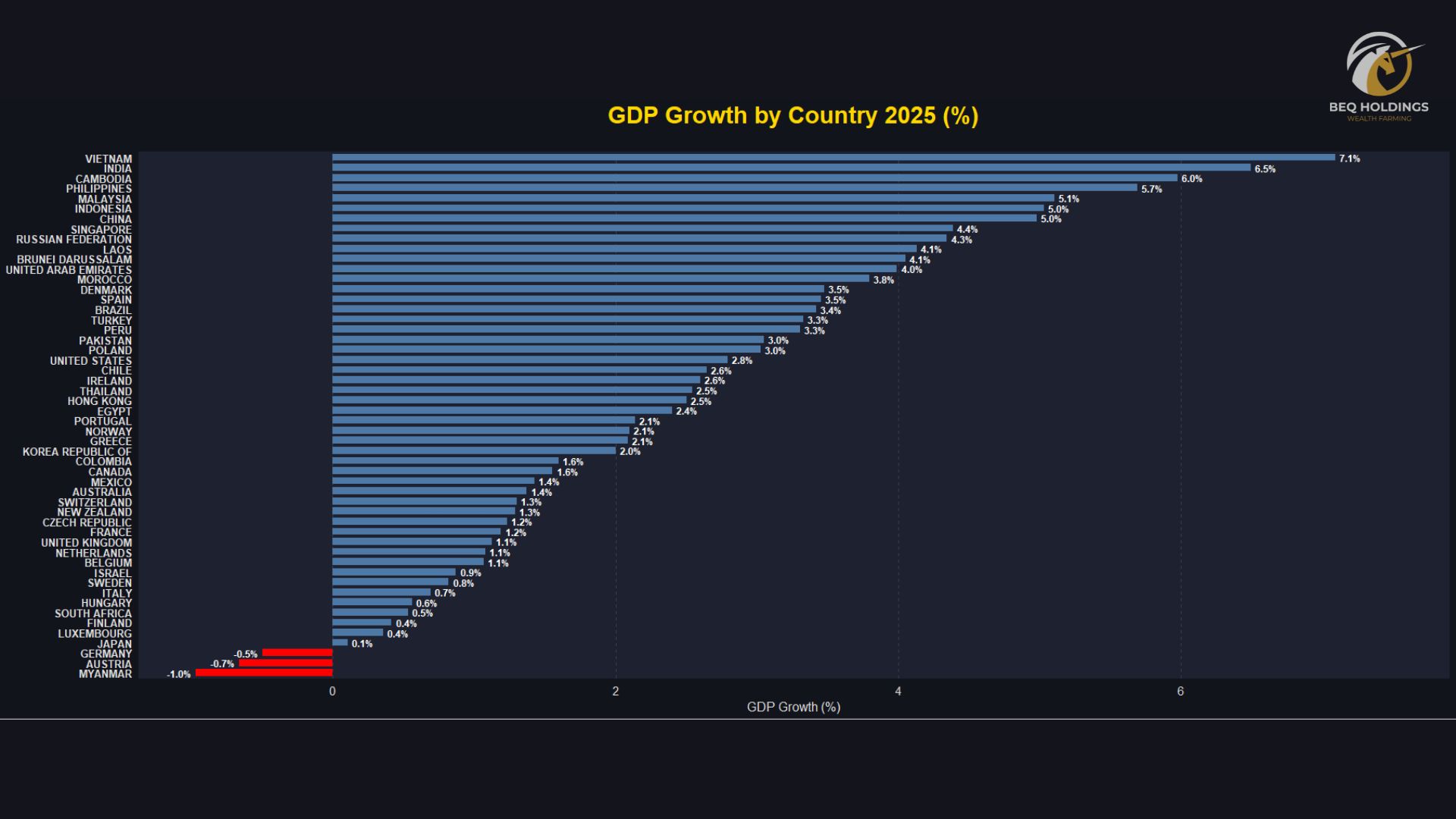 Theo dự báo 2025, Việt Nam đạt mức tăng trưởng GDP 7,1%, cao nhất trong nhóm các nền kinh tế được so sánh, vượt qua: