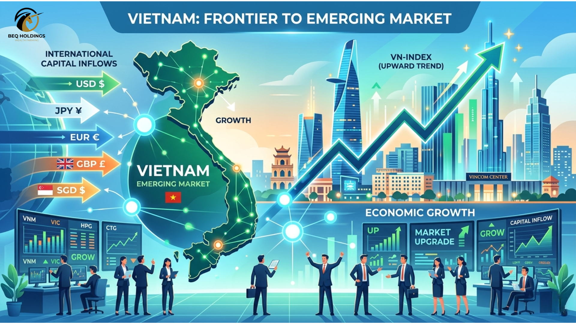Việt Nam đang tiến gần hơn đến cột mốc được nâng hạng lên thị trường mới nổi (Emerging Market) – một bước ngoặt có thể tái định hình toàn bộ cấu trúc của thị trường tài chính trong nước. Khi quá trình này diễn ra, dòng vốn toàn cầu có xu hướng dịch chuyển vào các nền kinh tế tăng trưởng, đồng thời kéo theo sự thay đổi trong cách thị trường được định giá và vận hành.